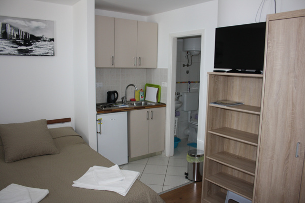 Studia se nacházejí přímo na nábřeží v městečku Kaštel Stafilič, jenž je součástí aglomerace sedmi malých měst s názvem Kaštela. Dům se studii leží na nábřežním náměstí vzdálen od moře jen 20 metrů. V okolí je nepřeberné množství obchodů, kaváren, restaurací a služeb, jenž vám zpříjemní váš pobyt.